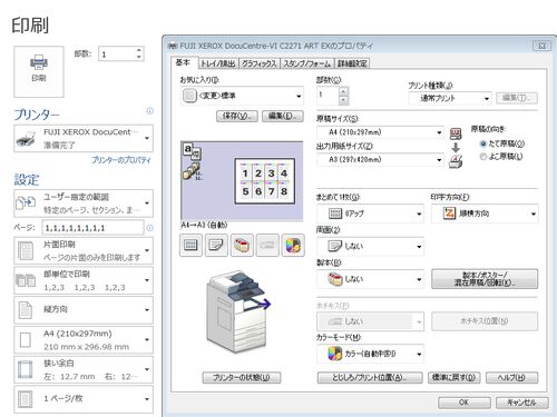 A4を2枚印刷するよりA3で2アップする方がカウンターは安い。 複数ページの資料を1枚にまとめるのではなく、1ページを小さくして1枚にたくさん作りたい人向けの印刷設定。